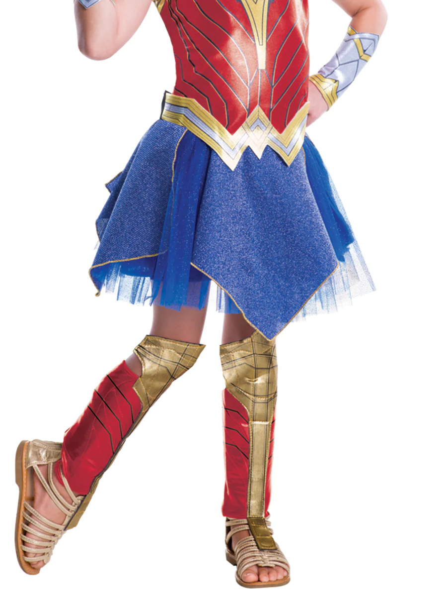 If your daughter wants to suit up alongside Batman and Superman to save Gotham City this Halloween check out our Justice League Movie - Deluxe Wonder Woman Child Costume! She'll look adorable and fierce when she puts on this red white and blue outfit complete with Wonder Woman's bracelets and tiara!